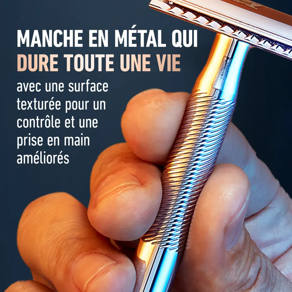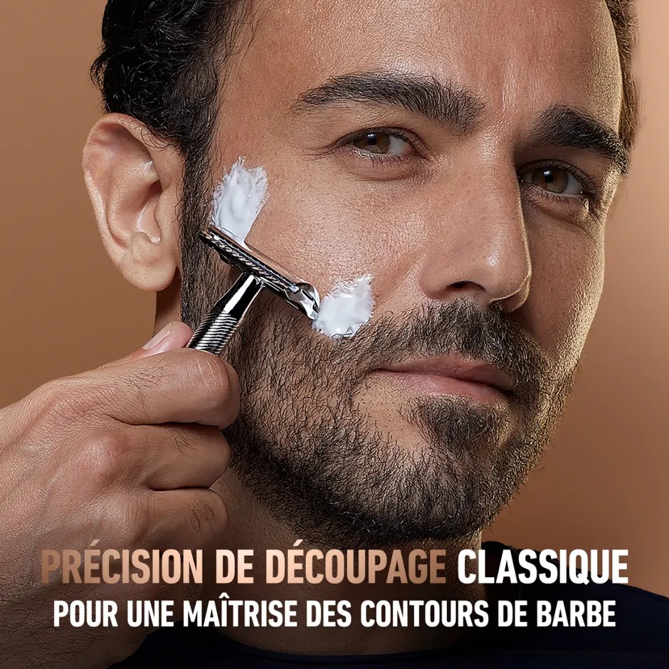 - Conçus pour offrir tous les avantages d’un rasoir de sûreté classique grâce à une ingénierie moderne pour un rasage de plus près, un meilleur contrôle et moins d’irritation cutanée